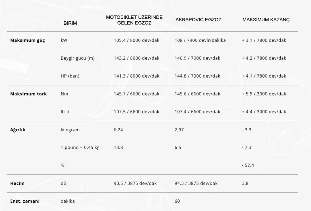 Akrapovič Slip-On Line (Titanyum) egzozuyla eşleştirildiğinde tam bir sistemi tamamlamak için bir yükseltme olarak geliştirilen bu başlık, karbon fiber ısı kalkanı olan yüksek kaliteli titanyumdan üretilmiştir. Sadece kapalı parkur yarış pistleri için tasarlanmıştır, performansı artırır ve ağırlığı azaltır. Standart stok sisteminden daha büyük çaplı borular ve katalitik konvertörün çıkarılması, gelişmiş gaz akışına olanak tanır. Ön susturucu, motordan derin bir yarış tonu üreten benzersiz bir ses deneyimi sunar. Bu yükseltme, standart stok ile karşılaştırıldığında %54,84 (3,4 kg) ağırlık azaltımıyla sonuçlanır. Slip-On Line (Titanyum ) ile birleştirildiğinde, standart stok sistemiyle donatılmış bir BMW R 1300 GS'ye karşı Akrapovič dinamometresinde test edildiği gibi, gücü 7.800 rpm'de 3,1 kW (4,2 hp) ve torku 3.000 rpm'de 5,9 Nm artırır. Kurulum tak-çalıştır şeklindedir, ancak yeniden haritalama zorunludur .Opsiyonel başlık, Akrapovič standardı (ilk uyum) / BMW Motorrad aksesuarı Akrapovič susturucusuyla da uyumludur. Opsiyonel Başlığın (Titanyum) takılmasıyla , Slip-On Line (Titanyum) için ECE tip onayı artık geçerli değildir. Euro5+ motosikletlere Opsiyonel Header (2 lambda sensörü) takıldığında, stok katalitik konvertör parametrelerinde bir sapma tespit edildikten sonra motor kontrol lambası yanacaktır.Model: BMW R 1300 GS - R 1300 GS ADVENTURE (23-26) Ürün No : E-B13E1Güç Bilgileri:[power]Güç: +3.1 kW - 7800 rpm[torque]Tork: +5.9 Nm - 3000 rpm[weight]Ağırlık:-3.3 kg Kurulum talimatları pdf dosyasını indirmek için tıklayınız.