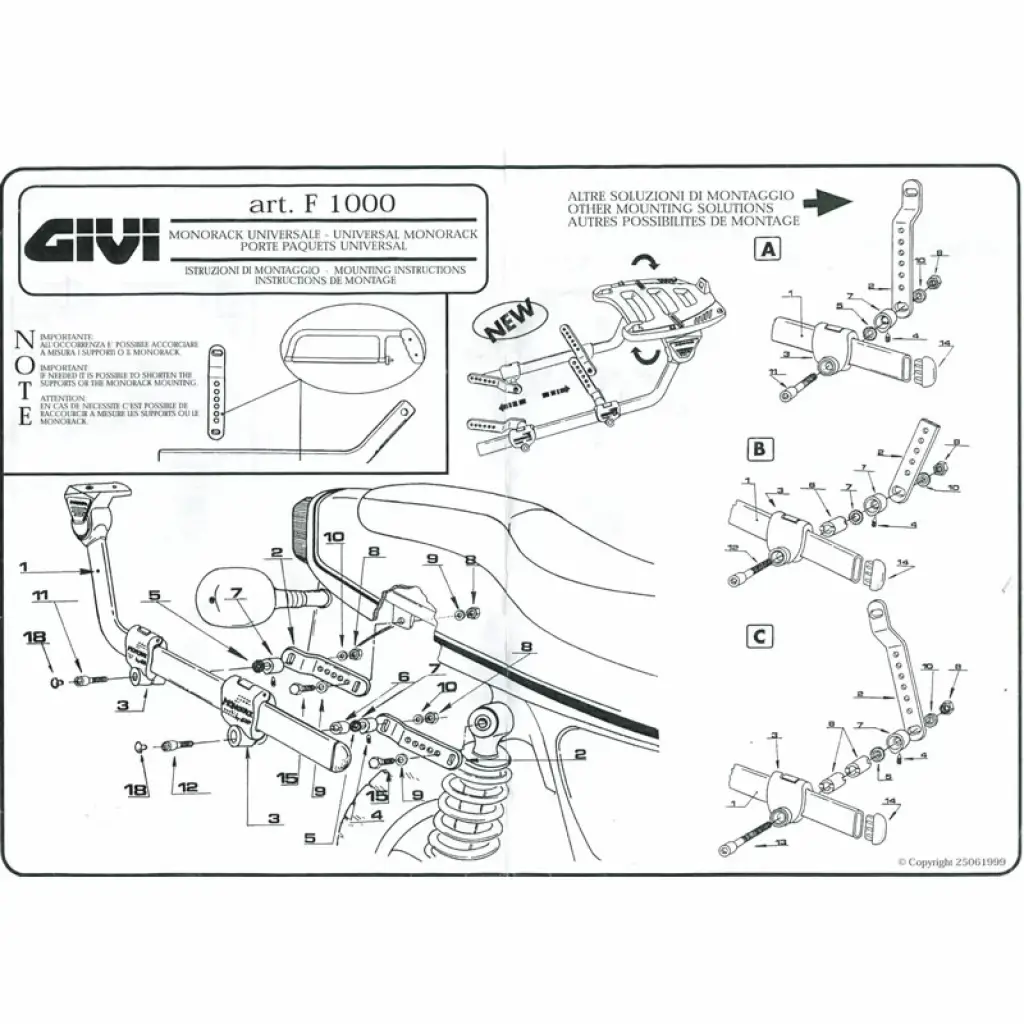 GIVI 1000F UNIVERSAL MONORACK ARKA ÇANTA TAŞIYICI