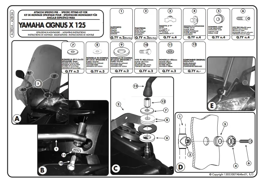RÜZGAR SİPERLİĞİ BAĞLANTI KİTİModel: YAMAHA CIGNUS X 125 (07-15)Ürün No : A283A
