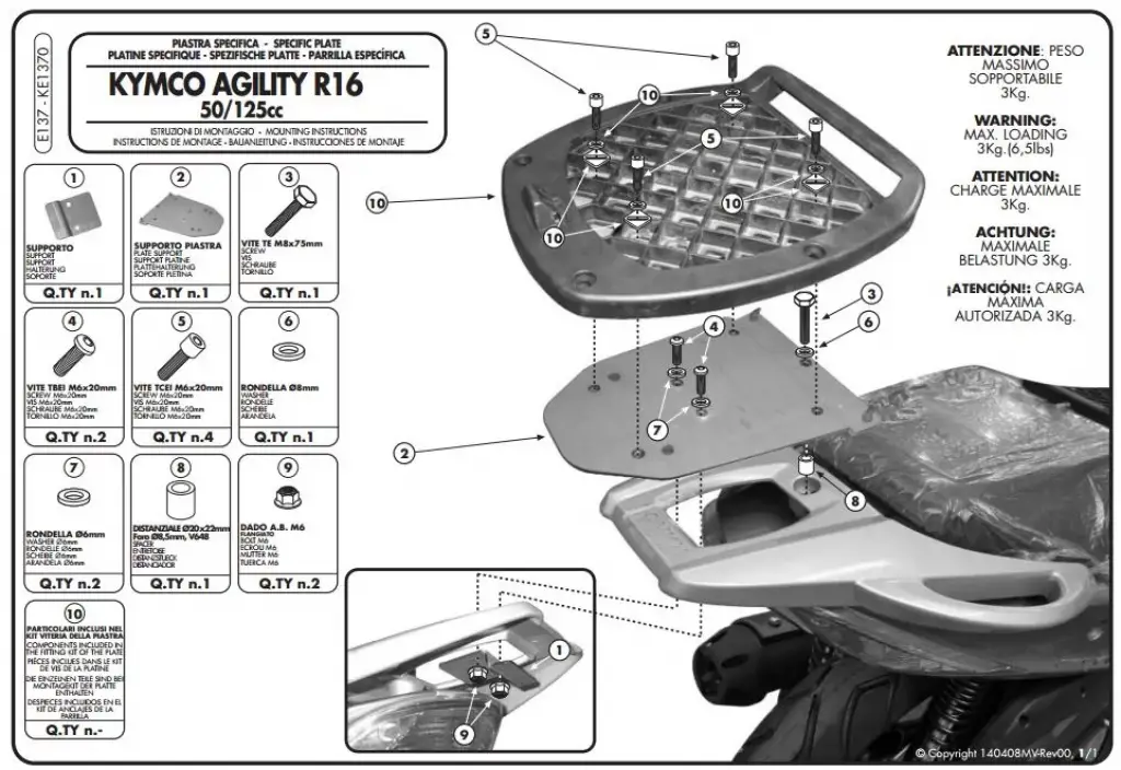 ARKA ÇANTA TAŞIYICIModel: KYMCO AGILITY 50-125-150-200 R16 (08-13)Ürün No : E137Bağlantı Şekli : Monolock Ürün pdf dosyasını indirmek için tıklayınız