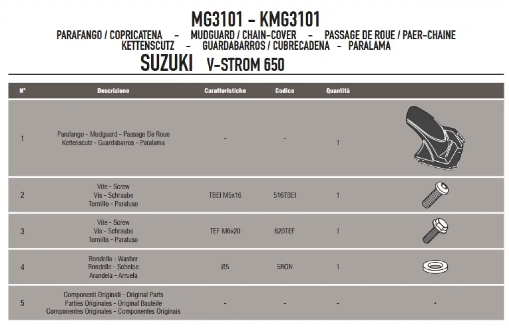 GIVI MG3101 SUZUKI DL 650 V-STROM (11-16) ZİNCİR MUHAFAZA VE ÇAMURLUK