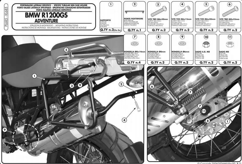 YAN ÇANTA TAŞIYICI Model: BMW R1200GS ADVENTURE (2006-2013)Ürün No : PL685Bağlantı Şekli : Direkt