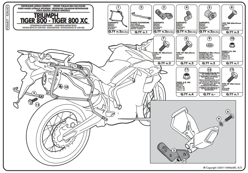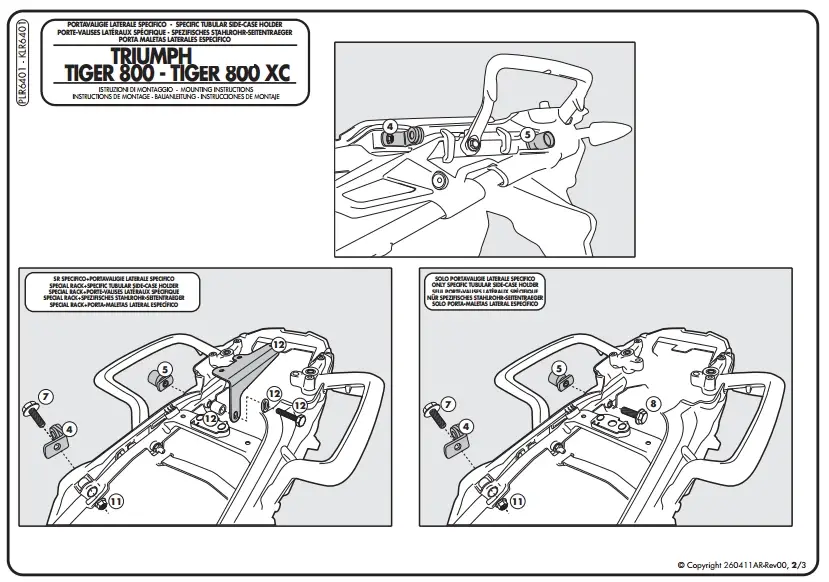 YAN ÇANTA TAŞIYICI Model: TRIUMPH TIGER 800 – 800XC (2011-2014) TIGER 800 XR – TIGER 800 XC (2015-2016)Ürün No : PLR6401Bağlantı Şekli : Direkt Ürün pdf dosyasını indirmek için tıklayınız