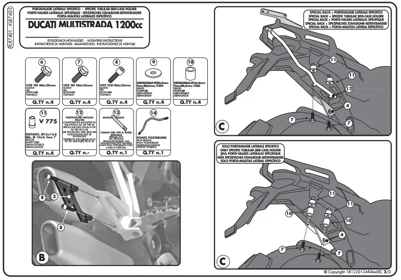 YAN ÇANTA TAŞIYICI Model: DUCATI MULTISTRADA 1200 (2010-2014)Ürün No : PLR7401Bağlantı Şekli : Direkt Ürün pdf dosyasını indirmek için tıklayınız