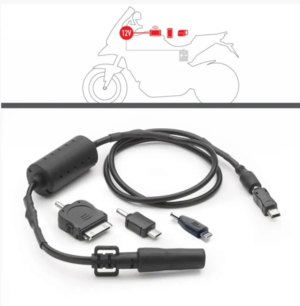 GIVI S112 DÖRT UÇLU GÜÇ SOKETİ12v fiş bağlantı kablosu,Gidonda bulunan telefon tutucusuyla kullanılabilir,4 adet farklı adaptörü bulunmaktadır,(smartphones, gps, micro, mini),S110 ile birlikte takılır.