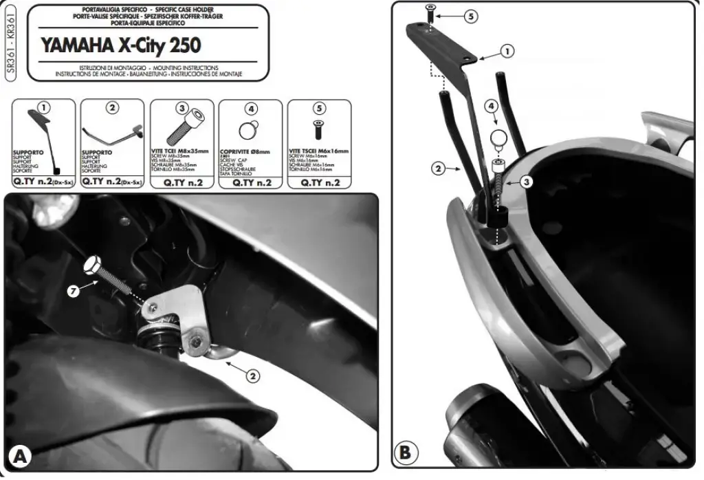 ARKA ÇANTA TAŞIYICIModel: YAMAHA X-CITY 125-250 (07-16) Ürün No : SR361Bağlantı Şekli : DirektSistem : Monolock