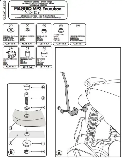 ARKA ÇANTA TAŞIYICIModel: PIAGGIO MP3 YOURBAN 125-300 (11-18)Ürün No : SR5600 Bağlantı Şekli : DirektSistem : Monokey Ürün pdf dosyasını indirmek için tıklayınız