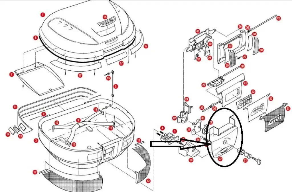 GIVI Z368N ÇANTA KİLİT MEKANİZMA KAPAK ALT E52