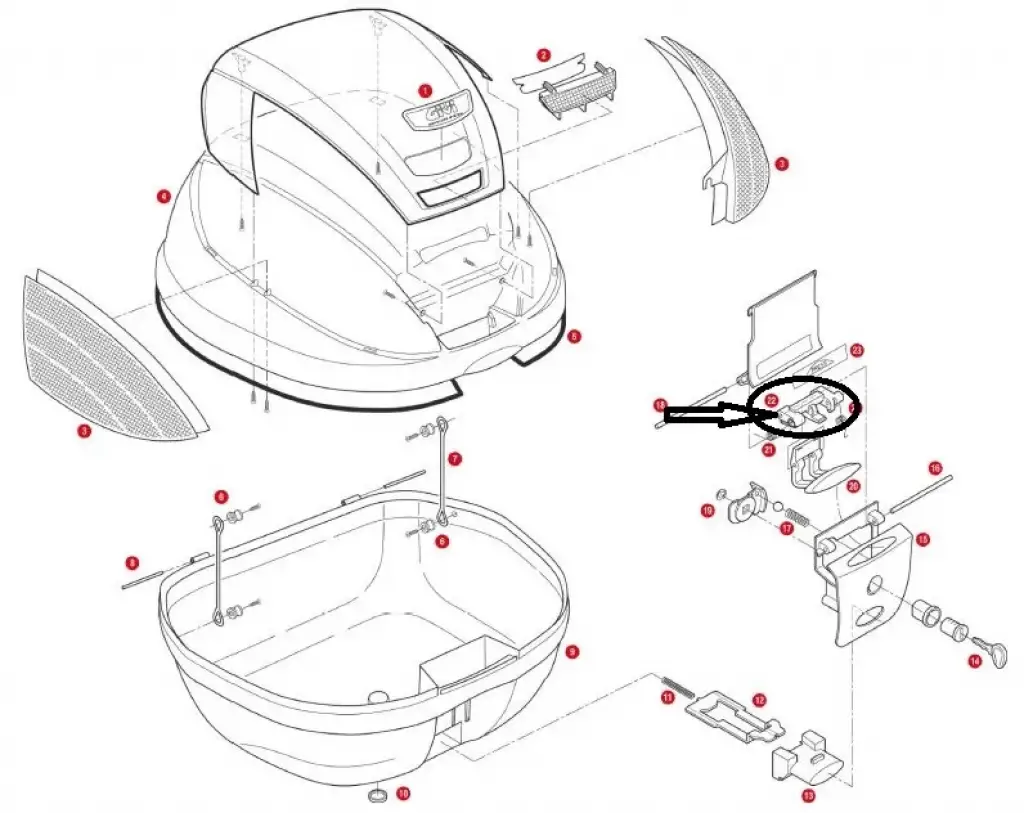 GIVI ÇANTA KİLİT PARÇASI Ürün no : Z643NRGIVI (TRK33-V46-E370) Çantalar ile uyumludur.