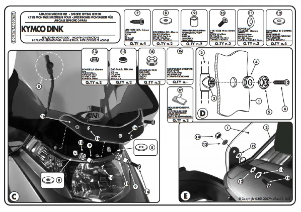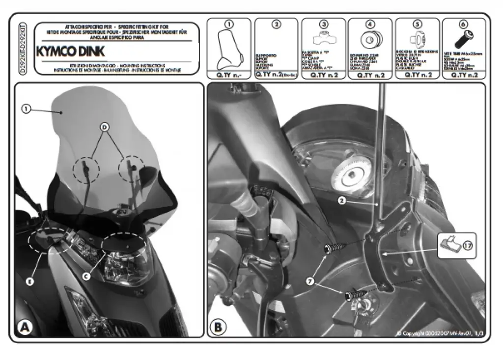 RÜZGAR SİPERLİĞİ BAĞLANTI KİTİModel: KYMCO DINK 50-125-200İ (2006-2016) Ürün No : D292KITK