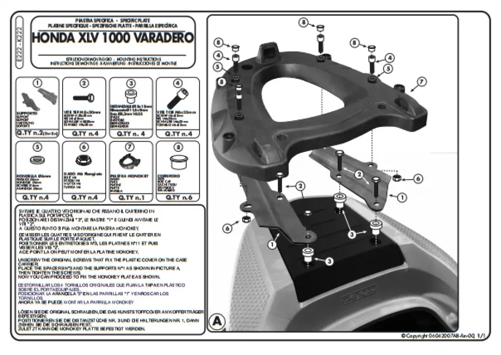 ARKA ÇANTA TAŞIYICIModel: HONDA XL 1000 VARADERO/ABS (2007-2012)Ürün No : K222Bağlantı Şekli : Direkt Sistem : Monokey