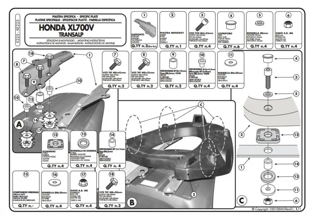 ARKA ÇANTA TAŞIYICIModel: HONDA XL 700 TRANSALP (2008-2013) Ürün No : K225Bağlantı Şekli : Direkt Sistem : Monokey Ürün pdf dosyasını indirmek için tıklayınız