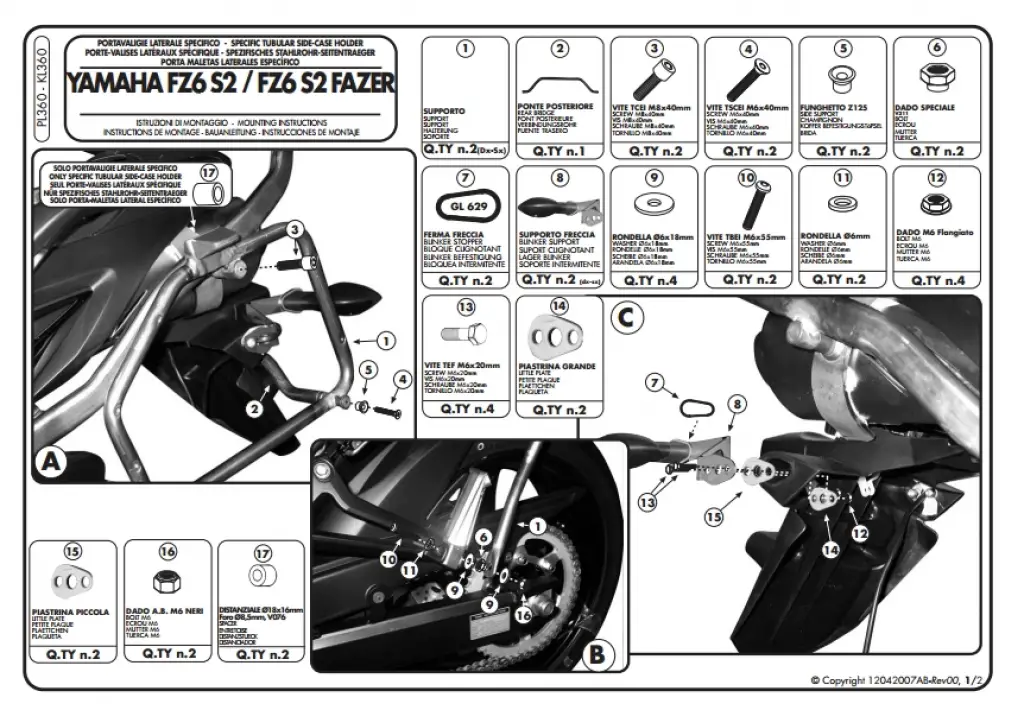 YAN ÇANTA TAŞIYICIModel: YAMAHA FZ6 S2 / FZ6 600 FAZER S2 (2007-2011)Ürün No : KL360 Ürün pdf dosyasını indirmek için tıklayınız