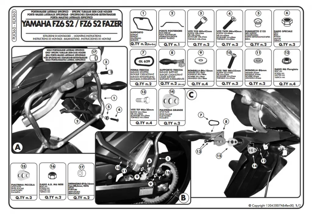 YAN ÇANTA TAŞIYICI Model: YAMAHA FZ6 S2 / FZ6 600 FAZER S2 (2007-2011)Ürün No : KLX360SADECE KAPPA K33 ÇANTAYA UYUMLUDUR