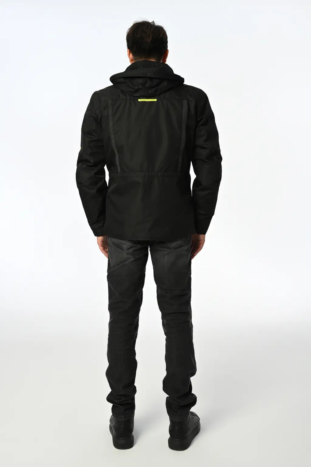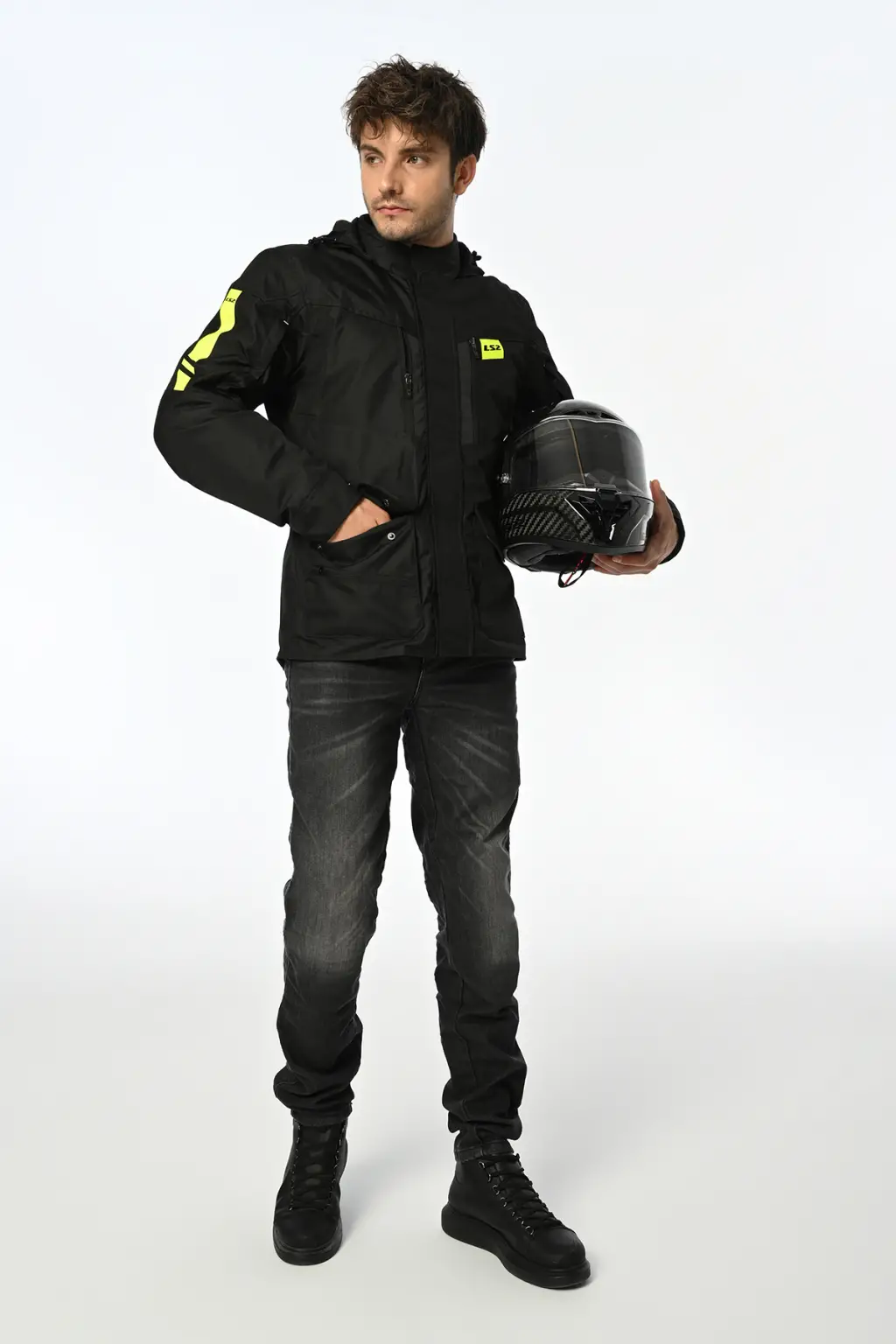 [kumas]MALZEME• AA seviye CE serfikalıdır(EN 17092-3:2020)• 450D Oxford CE onaylı kumaş (polyester)• Hava geçirgenliği 3000g/m2/24h• Membran Kaplama (5000mm)• Gündelik mont çizgisine sahip oluşu ve hafifliğiyle günlük kullanım için idealdir[koruma]KORUMA• CE onaylı EN1621-1: 2012 Seviye 1 sertifikalı omuz ve dirsek korumaları• Dirsek korumalarda 2 kademeli ayar• Soft sırt koruması çıkarılabilir [ergonomi]ERGONOMİ• YKK ön fermuar• Arkada ve kollarda havalandırma fermuarları• Aşınmaya dayanıklı omuz panelleri• Velcro yaka kapatma• Çıkarılabilir kapüşon• Kol ve manşet bölgesinde ayar çıtçıtı• Boyun konfor pedi• Pantolon bağlantı çıtı• Görünürlüğü arttırıcı reflektif şeritler[isi_dengesi]ISI VE ASTAR• Çıkarılabilir termal astar• Nefes alabilen yapı[ozellikler]ÖZELLİK• Aşınma ve yırtılma direnci • 2 adet dış cep• 2 adet fermuarlı göğüs cepleri• 1 adet iç cep• Kulaklık cebi• 1 adet su geçirmez cep telefonu cebi
