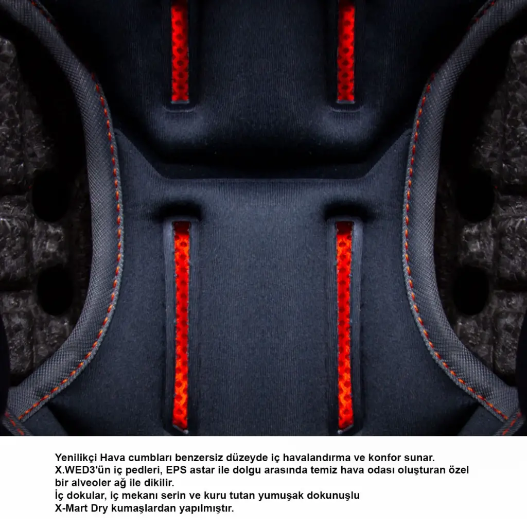 [genel]GENEL• 3 farklı kabuk yapısı ( xxs-s, m-l, xl-xxxl )• X.WED3'ün kabuğu daha hafif, daha güçlü ve daha konforlu hale getiren kompozit bir yapı elde etmek için yeni nesil bir teknoloji olan ultra hafif, darbeye dayanıklı X-PRO Karbon fiberden yapılmıştır.• Uzun yol, enduro ve günlük motosiklet kullanıcıları için geliştirilmiş yapı• Yeni titreşim önleyici EPS sistemi, iç EPS ile Dış EPS arasına yerleştirilmiş özel bir kauçuk kaplama içerir ve iç EPS'den mikro hareketlere izin verir.[havalandirma]HAVALANDIRMA• Dinamik hava sistemi• 7 giriş ve 4 hava çıkışı• Orta hava akış odası• Çene altı rüzgar perdesi[vizor]VİZÖR• Kolay takılıp çıkarılabilen vizör sistemi• Pinlock takılabilen ve çizilmeye dayanıklı ön vizör• Geniş görüş açısı• Güneş vizörü[konfor]KONFOR• X-Mart kumaş teknolojisi ile üretilmiş çıkarılabilir ve yıkanabilir iç padler,• X-FOAM çarpışma tamponları çarpışma enerjisini absorbe etmek, çarpışma hızını yumuşatmak ve köprücük kemiğinin kırılma riskini azaltmak için kaskın her iki tarafına ve çene bölgesine uyacak şekilde tasarlanmıştır.• Yüksek güvenlikli Double D bağlantı kayışı• Sürüş aerodinamiği için geliştirilmiş Tepe terek• Kross gözlüğü kullanıma uygun yapı• Gözlük askısı tutucu[sertifika]SERTİFİKA• ECE 22.06 sertifikası• DOT Güvenlik sertifikası[kutu_icerigi]KUTU İÇERİĞİ• Taşıma kılıfı• Pinlock buhar camı• Renkli vizör• Vizör kılıfı• Terek• Terek uzatma aparatı• Kamera montaj seti