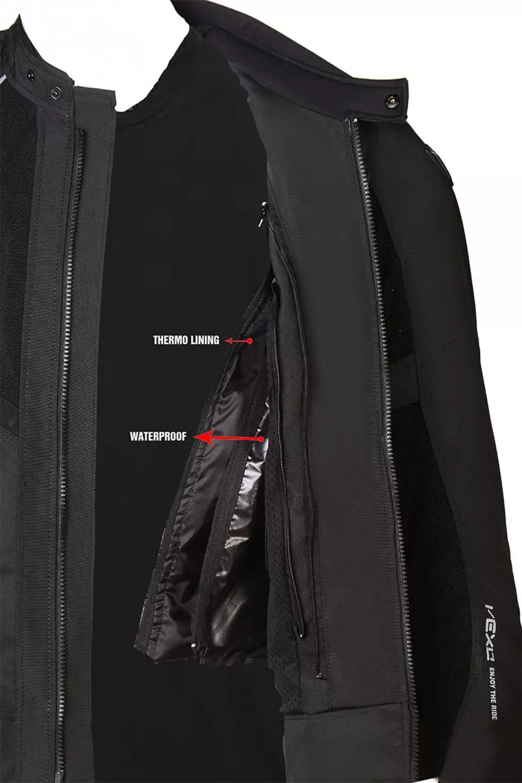 [kumas] MALZEME• Yüksek kaliteli Cordura 300D kumaş• Su geçirmez yapı• Üzerindeki file örgü sayesinde hava alabilen yapı• Dört mevsim kullanım[koruma] KORUMA• %100 İtalyan CE onaylı EN1621-1 2012 Sertifikalı omuz ve dirsek korumaları (çıkarılabilir)• Soft Sırt Koruması (çıkarılabilir) [ergonomi] ERGONOMİ• Rüzgar dirençli YKK fermuar sistemi• Bel bölgesinde kişisel ayar çırtları• 2 kademeli boyun ayar çıtları• Kol ayar cırtları• Bel ayar cırtları[isi_dengesi]ISI VE ASTAR• Nefes alabilen file kumaş• Kolayca çıkarılabilir su geçirmez iç astar• Kolayca çıkarılabilir termal astar[ozellikler] ÖZELLİK• Kemer bağlantı çıtı• Aşınma ve yırtılma direnci • Termal içlik üzerinde 1 cep• 1 adet iç cep • 2 adet dış cep• Görünürlüğü arttırıcı reflektif ekler